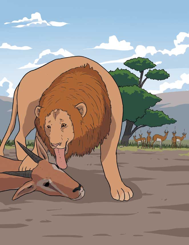 Marty tried to move but the lion placed a heavy paw on his neck adding more fright than you can possibly imagine. He was much bigger and stronger and Marty was absolutely powerless to help himself.